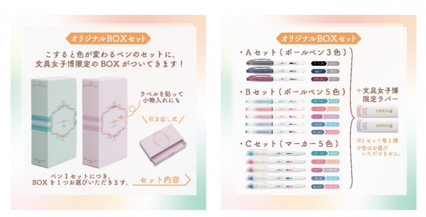 いずれかのセットをご購入の方に、文具女子博限定オリジナル BOX を 1 個プレゼントします。