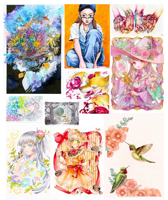 色をたくさん使っていながらの混色。それと、重ね塗りしながらも濁らせずに立体感を表現するという技術力の高さから選ばせていただきました。