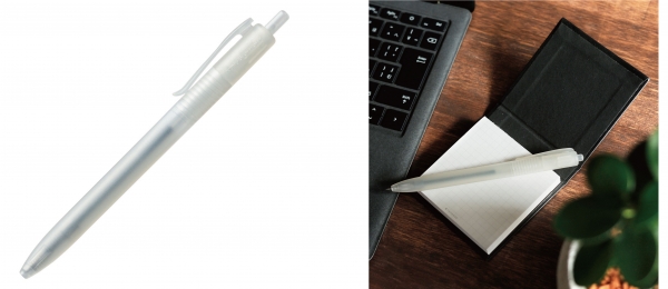 この商品は、回収されたクリアホルダーから再資源化した再生樹脂を軸材へ使用し、リフィルには“クセになる、なめらかな書き味。”の「ジェットストリーム」を搭載したノック式油性ボールペンです。