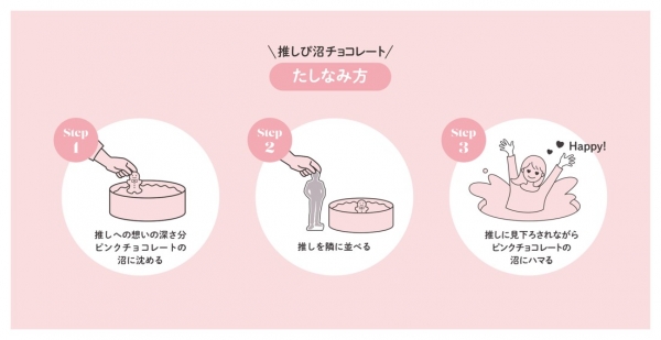 趣味や好きなものにどっぷりのめり込んでしまう「沼にハマった」状態や推し活にハマった様子に見立てて、人型のチョコレートをピンクのチョコレートにうずめたチョコレート缶。
