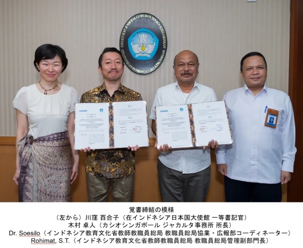 カシオ計算機は、インドネシアでの教育事業において、当社のグループ会社であるカシオシンガポールと教育文化省教職員総局が、関数電卓を活用した高校数学授業の定着に向けた協業を行うことで合意し、覚書を締結しましたのでご案内します。