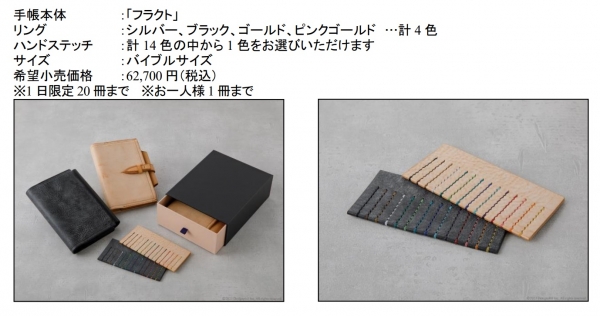 新シリーズ「フラクト」のリングカラーとハンドステッチ(ベルト、ポケット口前2 ヵ所)カラーが選べるスペシャルカスタマイズサービス。職人の手作業によりその場でお作りし、「&PAPERS」コラボスペシャル身蓋箱に入れてお渡しします。自分だけのプロダクトが完成する贅沢な時間をお楽しみください。