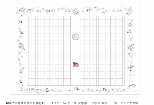 100 文字飾り原稿用紙櫻花眺 サイズ:A4 サイズ 文字数:10 字×10 字 紙:キンマリ SW