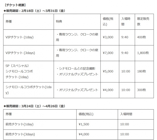 チケットは、楽しみ方に合わせて選べるように、VIPチケット、シナモロールコラボチケットなどをご用意しています。日常が戻りつつある今、存分にハンドメイドの魅力に触れることのできる3日間に期待が集まっています。
