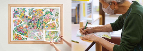 長年、人々のこころやくらしに寄り添い、人と人をつなげるコミュニケーション商材を提供しつづけてきたマルアイは、その知識や技術を活かして介護業界を取り巻く課題の解決に貢献したいと考え、2021年11月より定額で利用できるレクリエーション素材の定期便サービス『まるレク便』をスタートし『ピースぬりえ』の提供を開始しました。