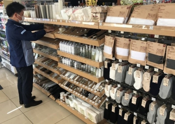 今回の導入では、化粧水、文具、衣類、レトルトカレー、菓子など生活の基本となる商品約200アイテムを、専用の販促物を使用した複数にわたる棚で展開します。