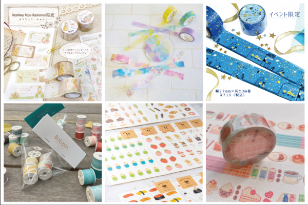 マスキングテープ、はんこ、デコレーションアイテム、マスキングテープ周辺アイテム、イベント限定アイテム、その他文具など