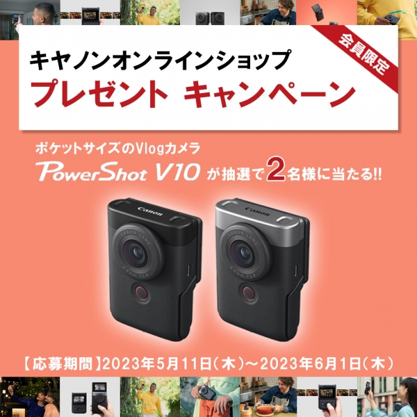 内容:応募期間中に会員ログインの上、アンケートにご回答いただいた方の中から抽選で2名様に、「PowerShot V10」をプレゼントいたします。