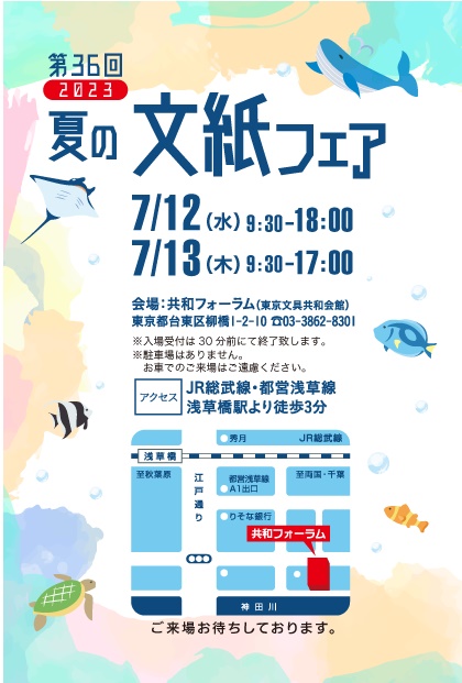 ステーショナリー情報委員会は「第36回2023年夏の文紙フェア」を7月12・13日の両日、台東区の共和フォーラムで開催する。