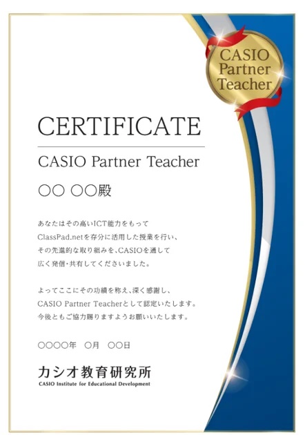 ・『CASIO PARTNER TEACHER』の認定証
