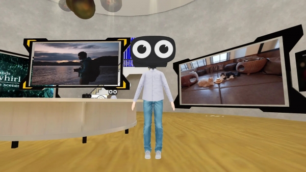 カメラEOS R5と、キヤノン初のVRレンズRF5.2mm F2.8 L DUAL FISHEYEを使用して撮影した立体視映像の世界観を楽しむことができます。コンテンツはキックボクシング、猫カフェ、ミュージックビデオ、ダンスの4種類です。それぞれのシチュエーションの立体視映像体験ができます。