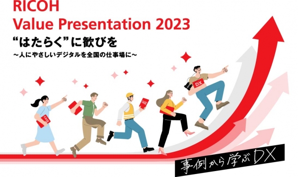 リコージャパン株式会社(社長執行役員:木村 和広、本社:東京都港区、以下 リコージャパン)は、「事例から学ぶDX」をコンセプトに、課題解決へのご支援を通じて得られた数多くの事例を通じて、“はたらく”歓びの実現に向けたDXを一歩前へ進めるためのヒントをご提案する「RICOH Value Presentation 2023」を7月11日(火)~8月4日(金)まで、オンラインで開催いたします。