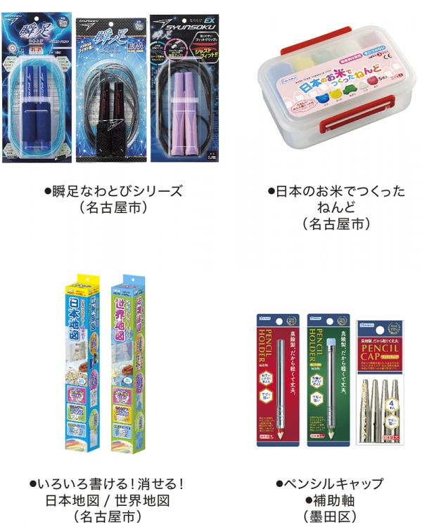 日本地図・世界地図(名古屋市)、ペンシルキャップ・補助軸(東京都墨田区)などです。