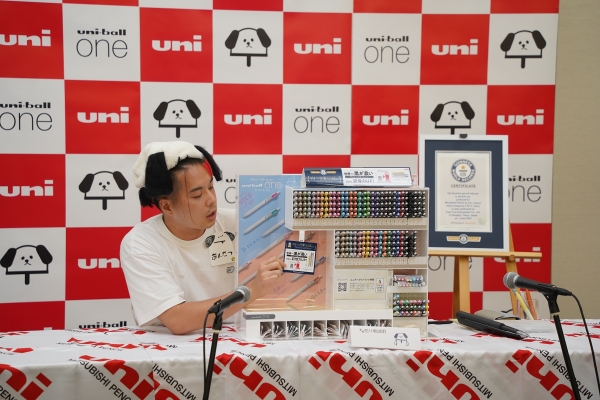 三菱鉛筆株式会社(本社:東京都品川区 社長:数原滋彦)は、ゲルインクボールペン「uni-ball one(ユニボール ワン)」シリーズでの「最も黒いゲルインクボールペン“Blackest gel ink ballpoint pen”」としてギネス世界記録™認定を受け、2023年8月7日(月)に公式認定証の贈呈式を行いました。