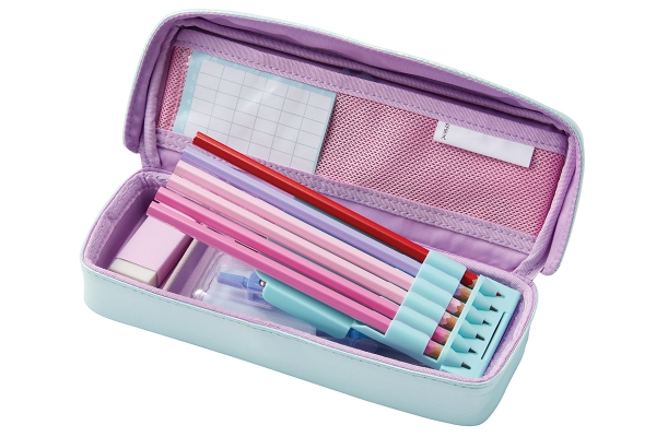 開きやすいマグネット式のフタにより、ファスナーが苦手な小学校低学年でも開け閉めが簡単にできる大容量筆入れです。