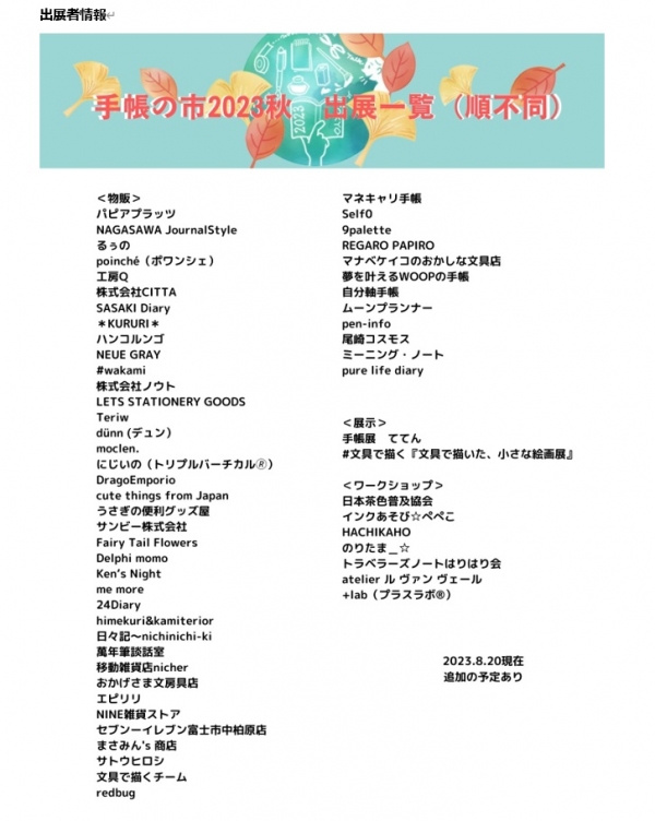 ホーム > オフマガ ニュース一覧 > 『手帳の市2023秋』2023年10月8日(日)、9日(月・祝)東京都立産業貿易センター浜松町館で開催