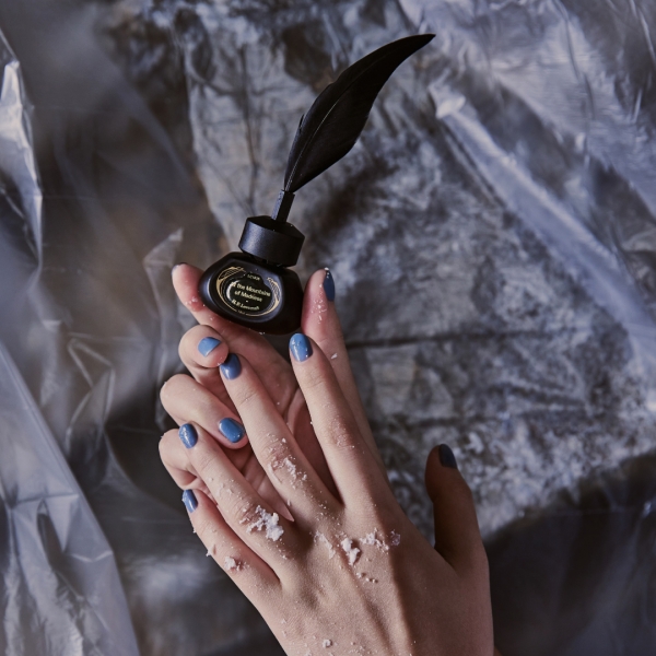 et seq.×文喫のコラボレーションは、文学作品内に登場する人物の言葉へのこだわりや完成された美学を、「自分自身の身に纏うネイルという形で表現したい」という想いから実現しました。羽根ペンをかたどったブラシとインク瓶のようなボトルのデザインになっており、各作品を色や質感、言葉で表現しています。