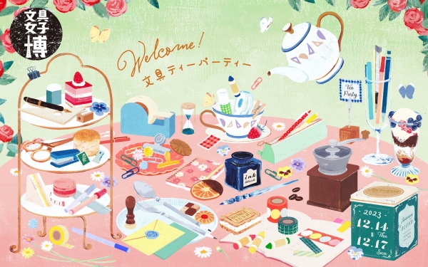 お客様にいつもワクワクした気持ちで会場に足を運んでいただけるよう、毎年違ったテーマを設定して開催しており、2023年のテーマは、「Welcome!文具ティーパーティー」。 ティータイムのような甘いひと時を、大好きな文具と一緒に過ごしてほしいという願いが込められています。