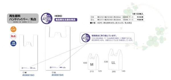 プラスチックのリサイクルを中心とした環境事業を展開する「株式会社esa(読み:イーサ、意味:Environmental Solutions Architect の頭文字)」(本社:東京都港区、代表取締役:黒川 周子、枝吉 宣輝、周 品諺、以下「当社」)は、このたび、包装用品・店舗用品の専門商社である株式会社シモジマ(本社:東京都台東区、代表取締役社長:笠井 義彦、以下「シモジマ」)とパッケージ業界大手の株式会社サガシキ(本社:佐賀県佐賀市、代表取締役社長:枝吉 宣輝、以下「サガシキ」)とともにエコフレンドリーな再生プラスチック原料「Repla®」を活用した低エネルギー・低コストのレジ袋・ゴミ袋を共同開発・発売することをお知らせいたします。