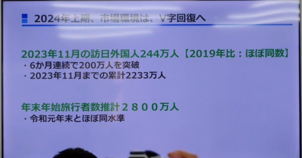 2023年11月訪日外国人244万人、これは2019年とほぼ同数。2024年上期は、市場環境はV字回復を見込んでいる。
