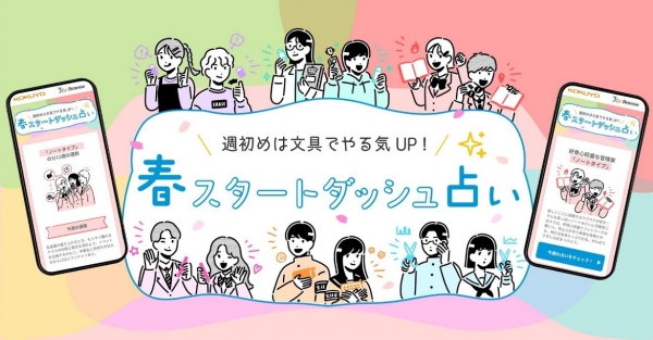 コクヨ株式会社(本社:大阪市/社長:黒田 英邦)は、株式会社ベネッセコーポレーション(本社:岡山市/代表取締役社長:小林 仁、以下ベネッセ)が提供する学習管理アプリ「StudyCast(スタディキャスト)」と協同し、新学期を迎える中高生の期待と不安が入り混じる心の変化に寄り添い、応援するWEBコンテンツ「週初めは文具でやる気UP!春スタートダッシュ占い」を3月12日(火)より公開します。