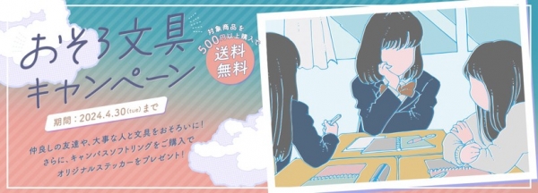 コクヨ株式会社(本社:大阪市/社長:黒田 英邦)は、学生の新学期シーズンにおいて、親しい友達や仲間、家族とおそろいの文具を持つきっかけを作ることで、文具を通じて新たな出会いや絆を深める機会を応援する「おそろ文具キャンペーン」を3月14日(木)より4月30日(火)までの期間、コクヨ公式ステーショナリーオンラインショップにて実施します。