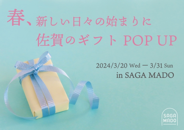 佐賀の県産品を厳選したセレクトショップ「SAGA MADO」では、3月20日(水曜日・祝日)から、贈り物にぴったりな佐賀ならではの商品を厳選したPOPUPを開催します。