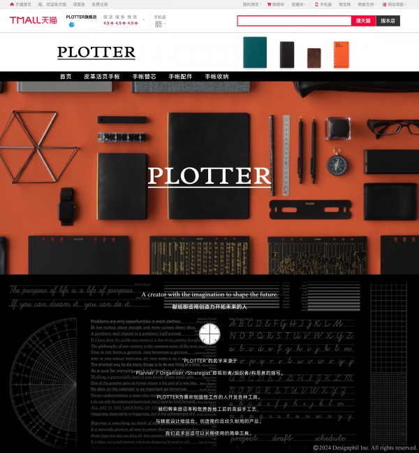 今回、ブランドの更なる成長と海外市場での認知拡大を目指し、世界 1 位と言われるオンライン小売市場を有する中国の「Tmall」で、初のフラッグシップショップ(URL:plotter.tmall.com)をオープンします。既に展開を行っている当社の「トラベラーズカンパニー」、「ミドリ」で培った経験をもとに、中国のお客さまに「プロッター」独自の世界観や楽しみ方を訴求してまいります。
