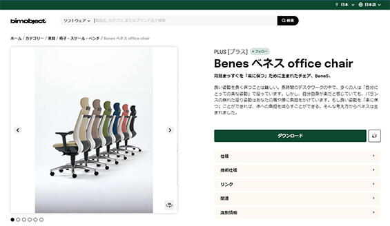 これにより、BIM*の普及に伴う設計/デザイン業務に対応すべく、空間イメージや製品情報を提供。BIMを活用した設計に際し、BIMobject内のプラス専用ページ(https://www.bimobject.com/ja/plus)及び、プラス ファニチャーカンパニー公式サイト専用ページ(https://kagu.plus.co.jp/product/cad/)より無料でプラス製品のBIMデータをダウンロードし、設計業務の効率化に活用いただけます。