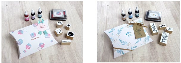 STEP2:ご自身で作った「いろづくり」と、お好きなゴム印を使いピローボックに押す