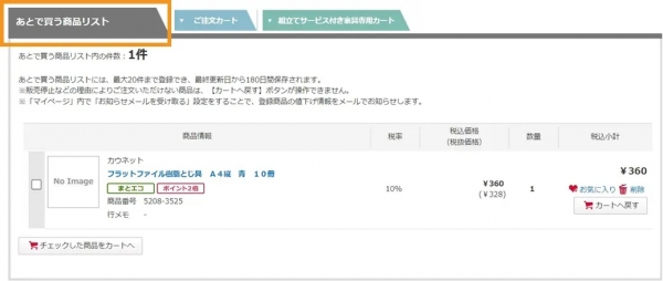 ホーム > オフマガ ニュース一覧 > カウネット 購入検討中の商品をストックできる「あとで買う機能」をショッピングカート内に追加
