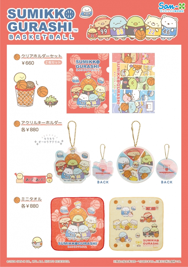 サンエックス株式会社(本社:東京都千代田区)は、ゼビオグループのゼビオ株式会社(本社:福島県郡山市)と株式会社ヴィクトリア(本社:東京都千代田区)が全国に展開する「スーパースポーツゼビオ」「ヴィクトリア」「ネクサス」「タケダスポーツ」の各店舗にて、「バスケットボール」をテーマとした、すみっコぐらしとのコラボレーションアイテムが2024年7月27日(土)より発売開始されることをお知らせします。