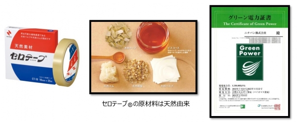 当社のセロテープ®は発売から70年以上、天然素材を主原料とし、2021年度からは100%グリーン電力による生産に移行しております循環型エコロジー製品です。