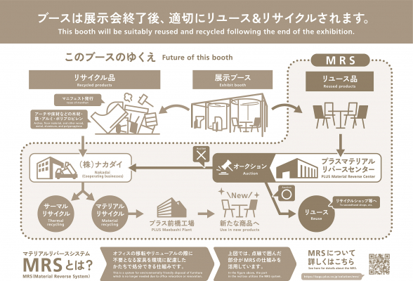 プラス ファニチャーカンパニーは、今後もサステナビリティの観点から、製品開発はもとより、展示会出展ブースの素材選定・制作・廃棄の各工程において環境負荷軽減を目指してまいります。