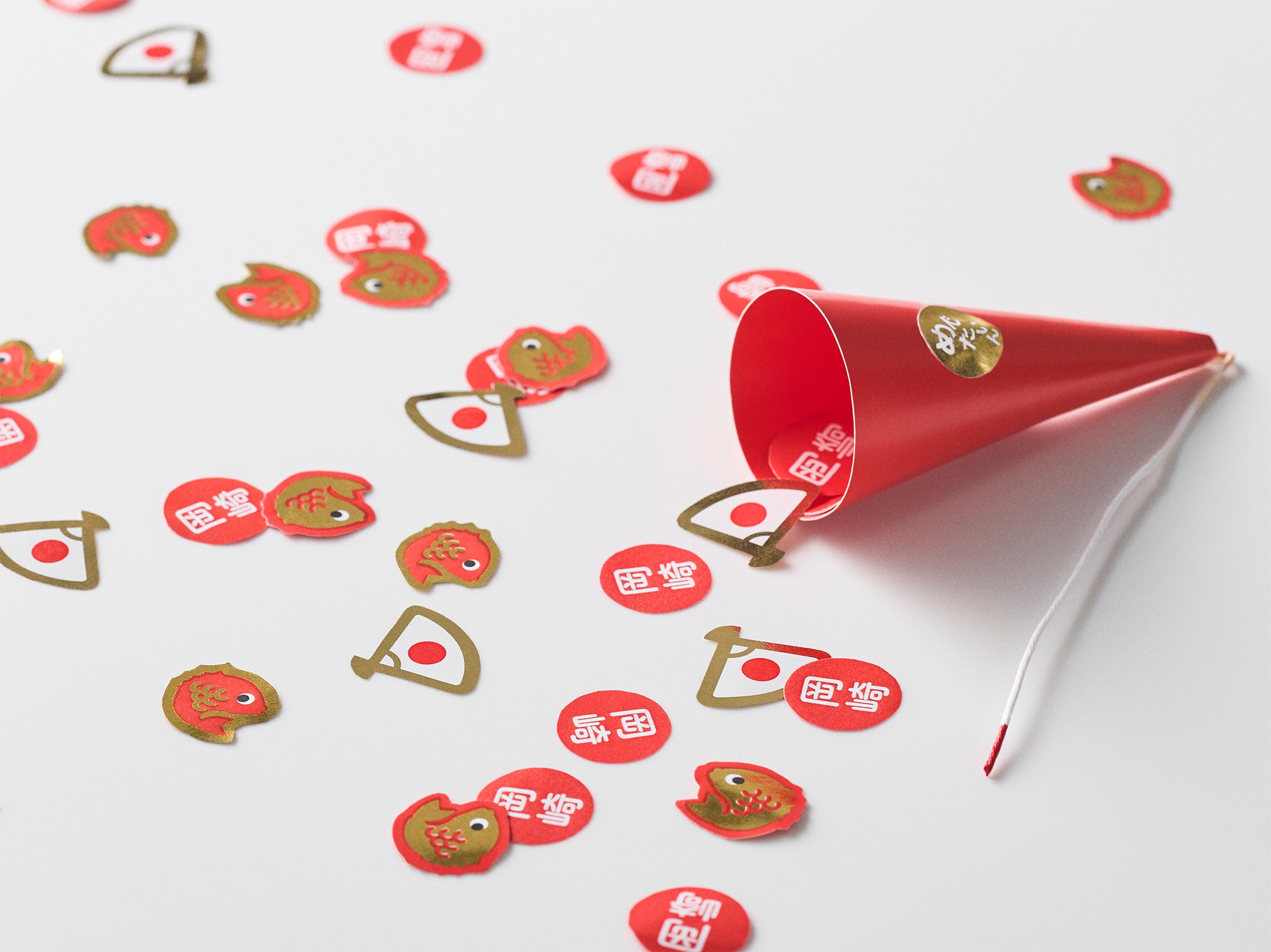 紐を引くとパンッと音が鳴り、名前がひらひらと宙を舞う。主役の名前のしるしをしのばせることで、少し特別なサプライズを仕掛けられるパーティークラッカーです。誕生日でも、結婚式でも、授賞式でも、名前で主役を引き立て最高の瞬間を作り出す、めでたいしるしの提案です。