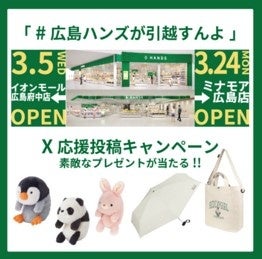 八丁堀から引越して3月5日にオープンした「ハンズ イオンモール広島府中店」と3月24日にオープンする「ハンズ ミナモア広島店」2 店舗を応援するコメントをポストしていただくと、 抽選で素敵な賞品があたります。