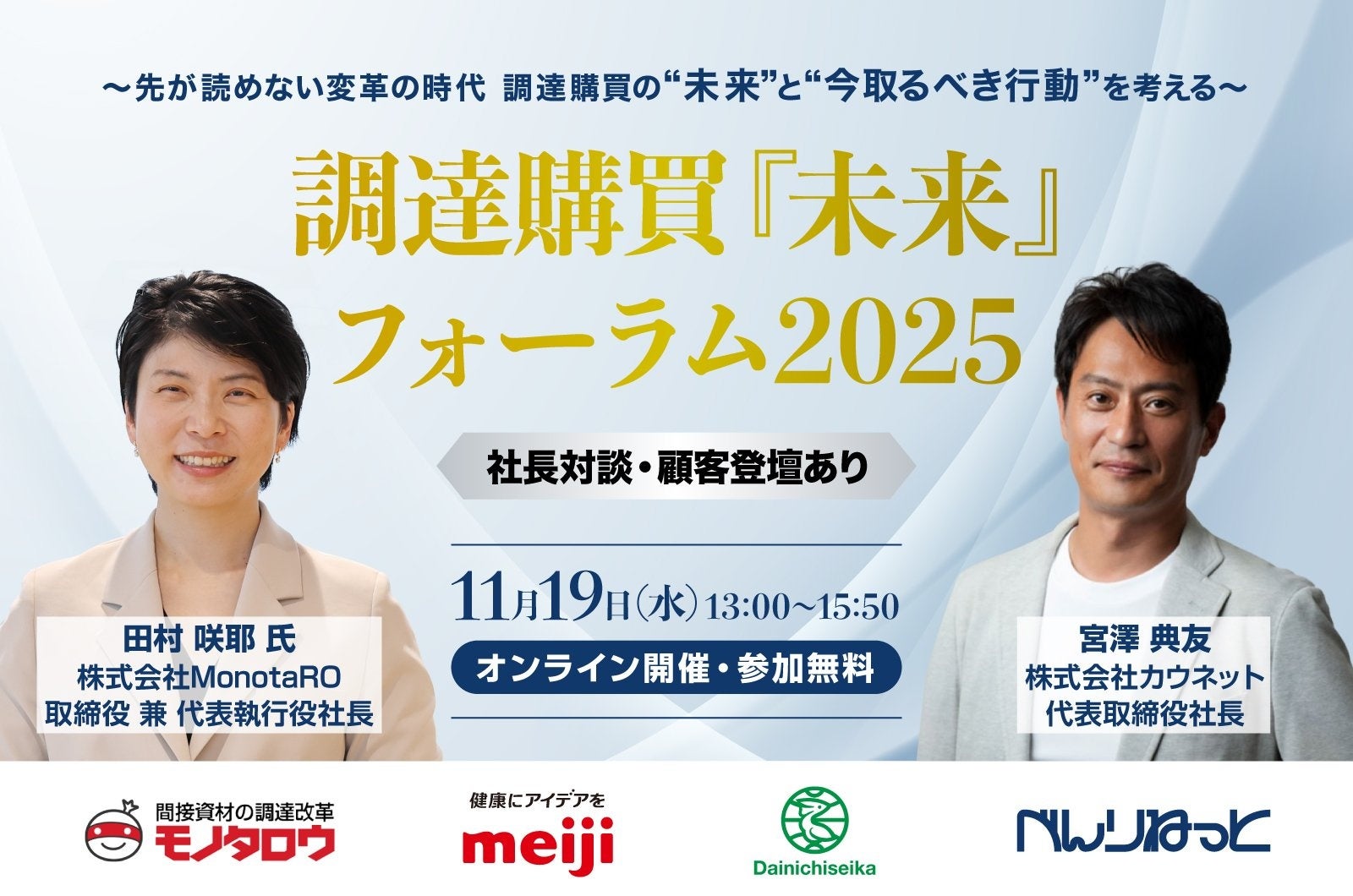 MonotaROとカウネット両社長が購買の未来について対談!「調達購買『未来』フォーラム2025」を2025年11月19日(水)にオンライン開催 2025年10月28日
