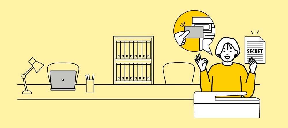 ・・・社員証などのICカードをかざす、またはPINコードを入力するだけでユーザー認証が可能となる。認証するまで印刷が開始されないため、印刷物が第三者の目に触れるリスクを未然に防ぎ、情報セキュリティリスクを低減する。