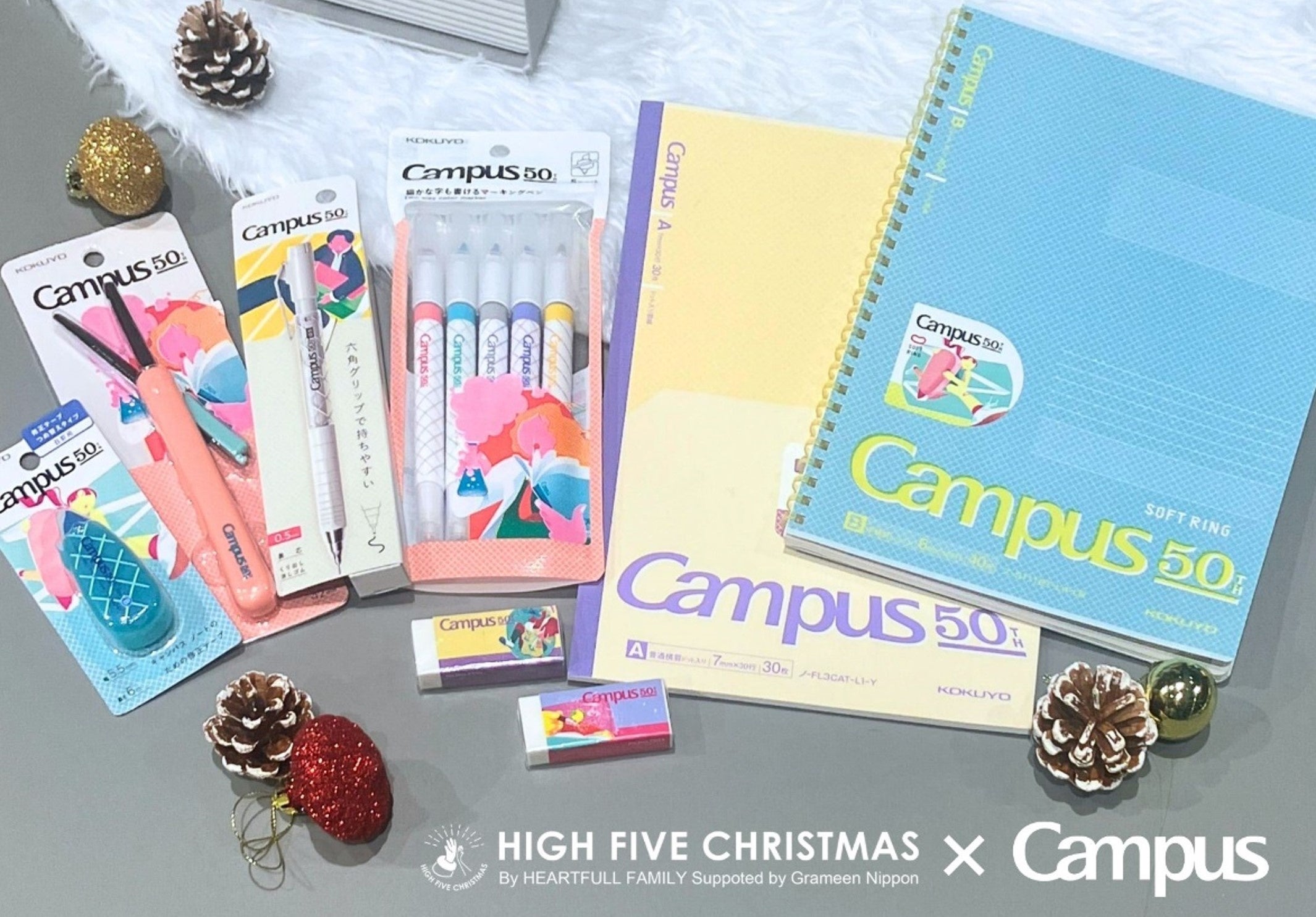コクヨは、子どもたちの学習に欠かせない文具をクリスマスプレゼントとしてお届けすることで、シングルファミリーの保護者様やお子様たちに笑顔をお届けしたい、文具を通して子どもたちの“まなび”を支えたいという思いから、本プロジェクトへ賛同し、昨年に引き続き3回目となる寄付による支援を行いました。今年は、学生の“まなび”をサポートするブランド<Campus>の商品をセットにしてお届けします。