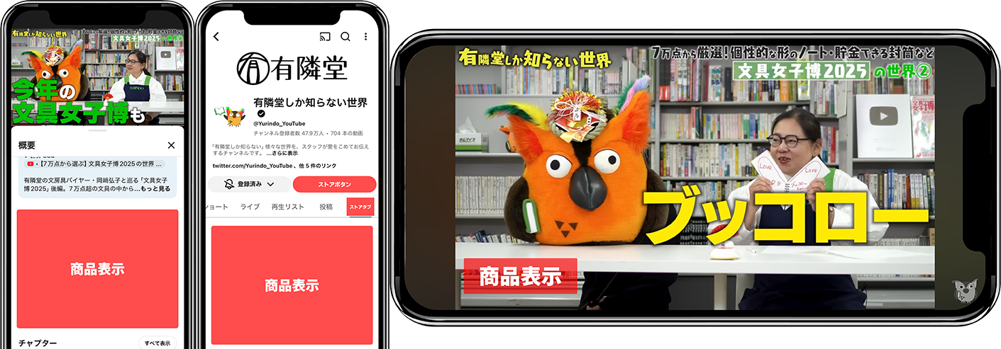 本取り組みの出発点は、公式YouTubeチャンネル「有隣堂しか知らない世界」における視聴体験と購買体験のつながり方にあります。動画を視聴した流れのまま、迷わず自然に購入へ進める導線を整備し、ライブコマースを実現することを最優先の課題として取り組んできました。
