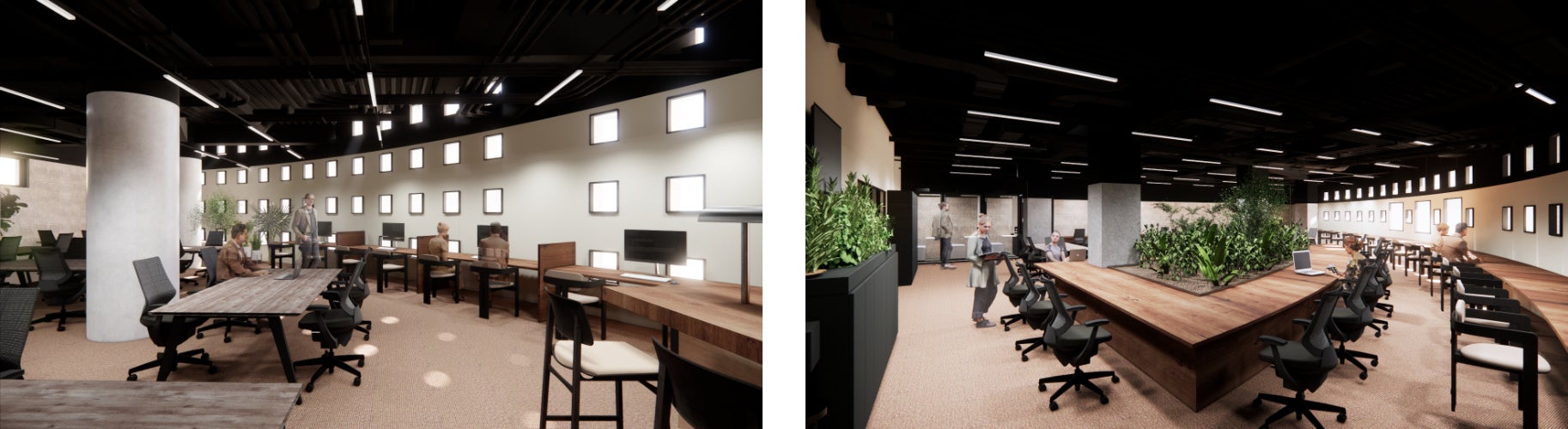 本計画の企画・空間設計・実施設計はコクヨが進めており、オフィス機能を中心としながら、交流や健康増進といった要素を掛け合わせた複合的な空間として計画しています。