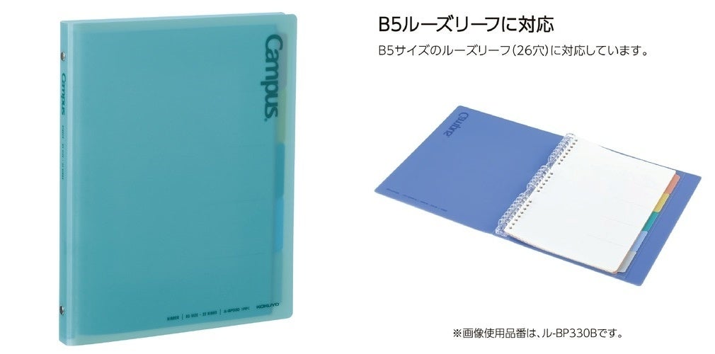 整理しやすく、必要な情報をいつでも見返せるバインダー。つまむだけで全てのリングが一斉に開く仕様で、片手でも軽く操作できます。綴じ具が大きく開くため、中紙の差し替えもスムーズ。B5サイズ(26穴)のルーズリーフに対応し、表紙カラーに合わせたインデックスとクリヤーポケット付きで、プリントや資料もすっきり整理できます。