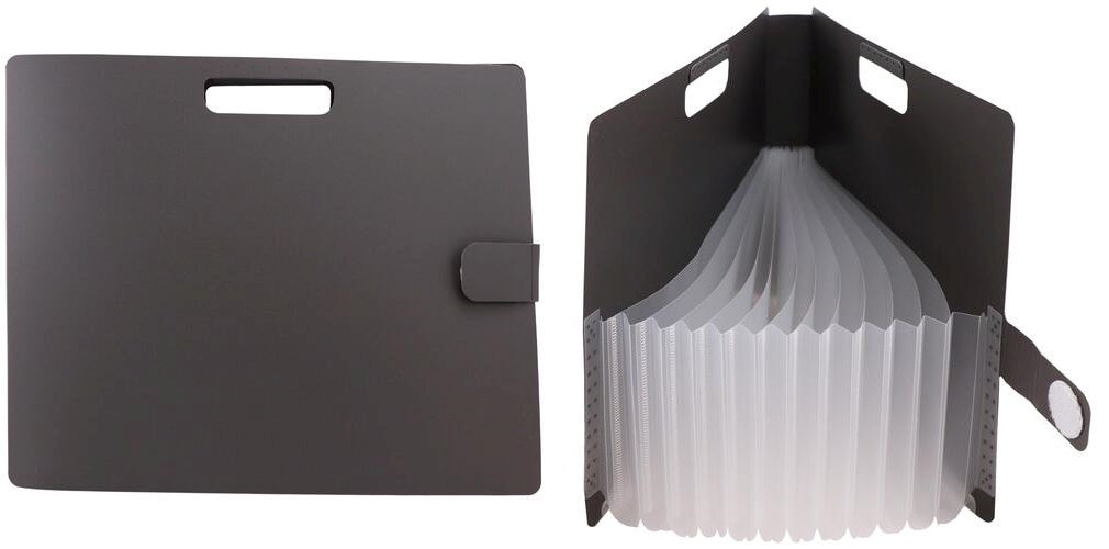 使いたいものが一目でわかり、取り出しやすさにこだわった自立式ポケットファイル。整理収納アドバイザー・水谷妙子さん監修のもと、幅広で出し入れしやすい13ポケットや、中身を確認しやすい低め設計、持ち運びに便利なハンドルなど、使いやすい工夫を詰め込みました。面ファスナー付きで中身が飛び出しにくく、小さなお子さまでも簡単にお片づけ可能。シールや便箋、トレーディングカードから、レシートやハガキ、レシピまで、家庭でもオフィスでも幅広く活躍します。