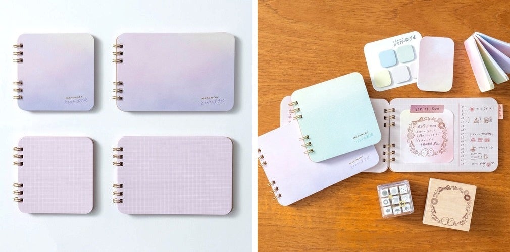 まるみのあるやさしいカラーとフォルムが気持ちをふっと和らげてくれるノート。Mサイズはパソコンの前でも使いやすい横長サイズで、作業中のメモにも最適です。5mm方眼罫にはページを分割できる目印入りで、情報整理もしやすい設計。日々の記録を気軽に続けられる、ほどよいサイズ感とページ数で、毎日の書く時間に寄り添います。