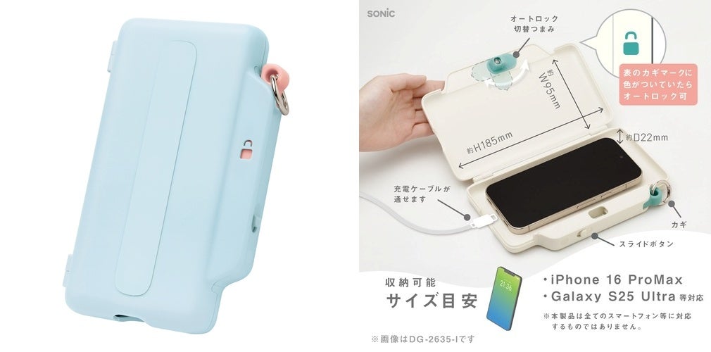 ついついスマホに手が伸びてしまう習慣を防ぐ、スマホ専用のロックケース。ケースとカギを分けて使うことで、すぐに触れない環境をつくります。生活リズムを整えたいときや、勉強・試験前の集中時間、塾や学校でのスマホ管理にも便利。充電ケーブルを通せる仕様で、ケースに入れたまま充電できるのもポイントです。