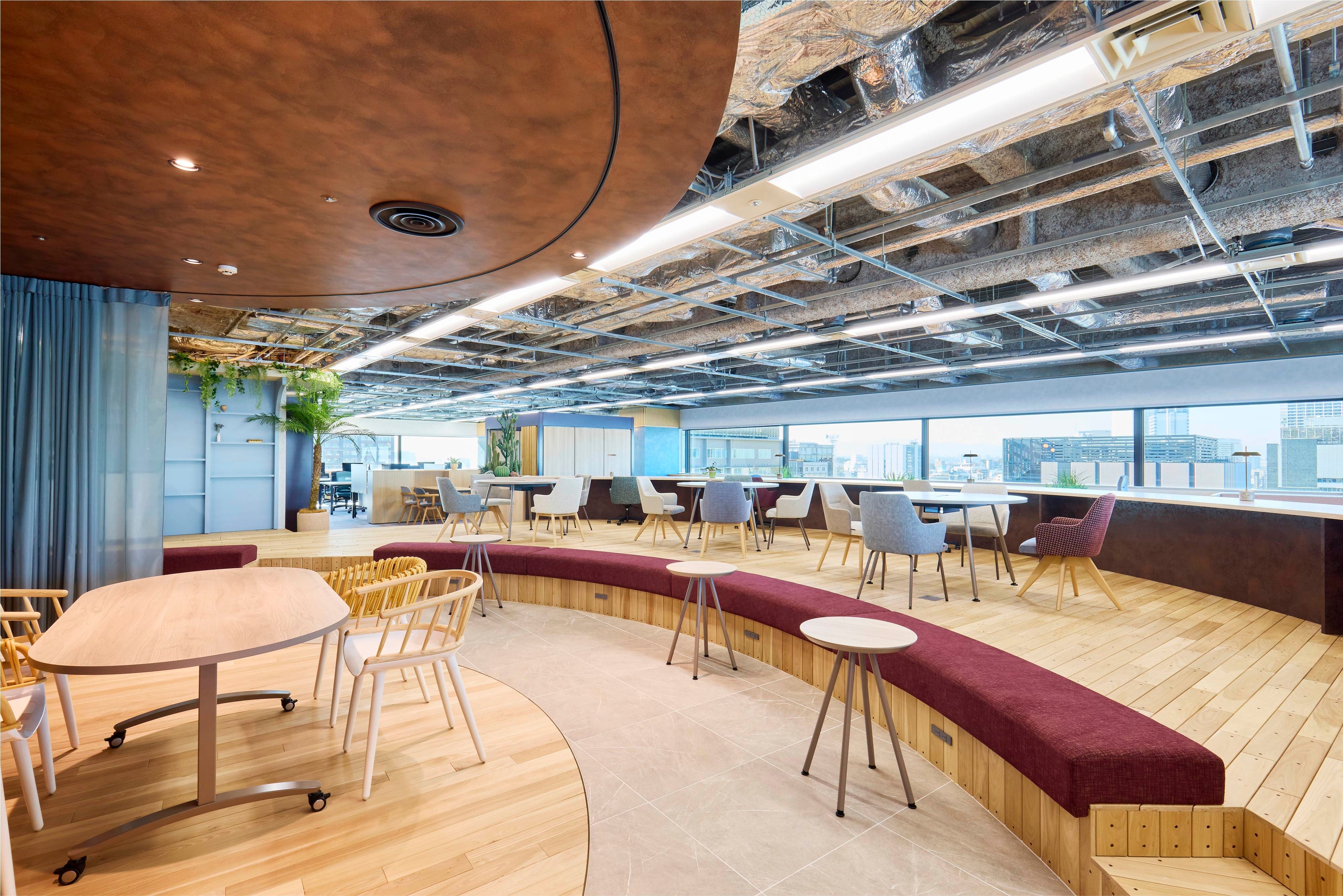 来訪者とワーカーが自然に交差するこのエリアは、本拠点の象徴的なスペースであり、お客様との共創活動だけでなく、さまざまなイベント、セミナーの開催などを通じて、プラスが考えるこれからのオフィスの在り方や、働き方について情報発信してまいります。