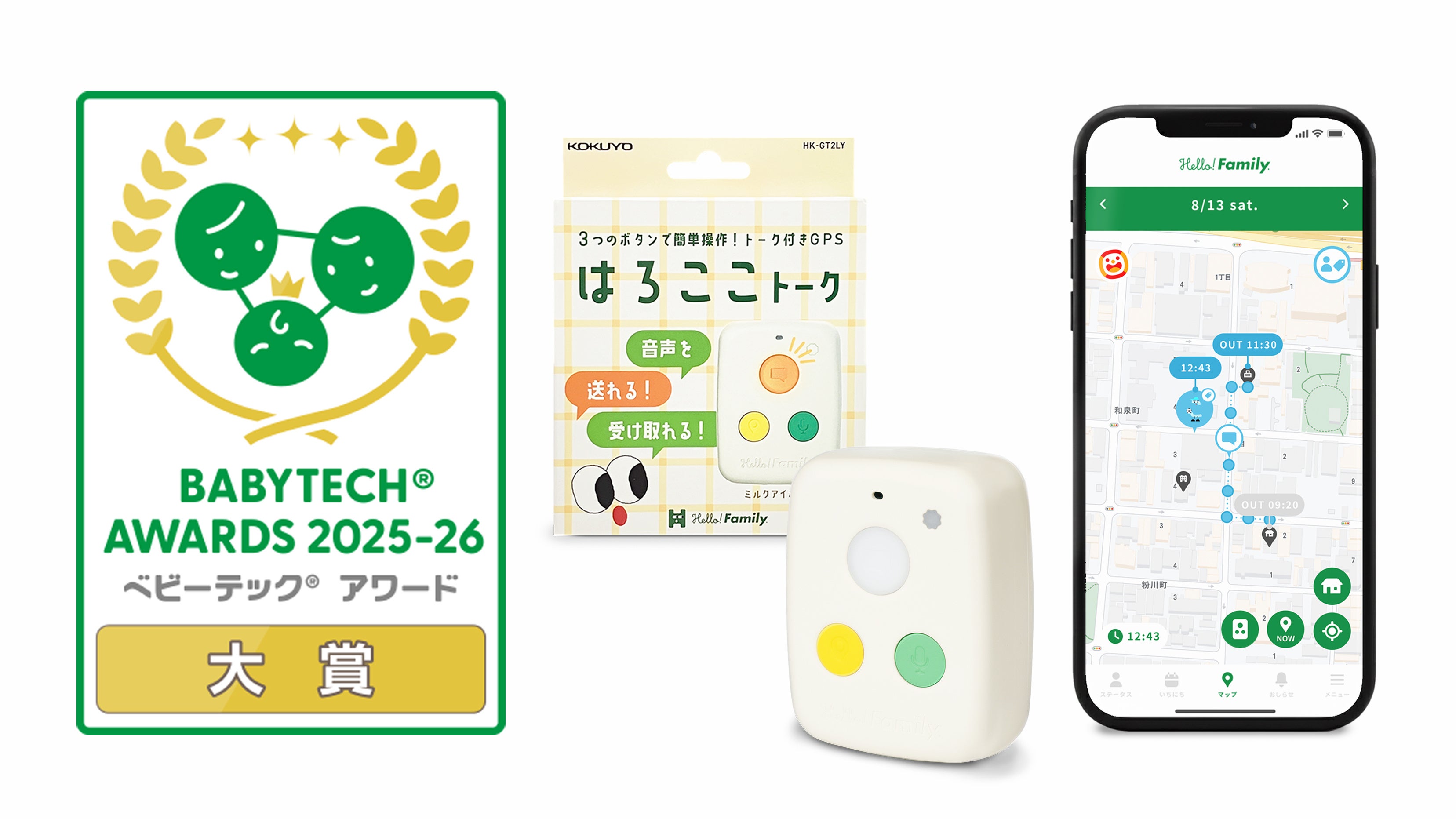 ホーム > オフマガ ニュース一覧 > コクヨ「Hello! Family.」ブランドの音声メッセージ機能付きGPS端末「はろここトーク」が「BabyTech(R) Awards 2025-26」安全対策と見守り部門 にて大賞を受賞!