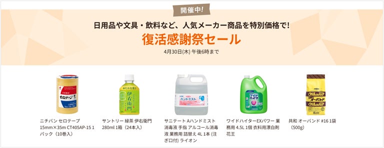 ホーム > オフマガ ニュース一覧 > アスクルの仕事場の日用品を特別価格で提供する企画が好評!2月24日より事業所向け「復活感謝祭」を開催、特別価格対象商品を大幅に拡大