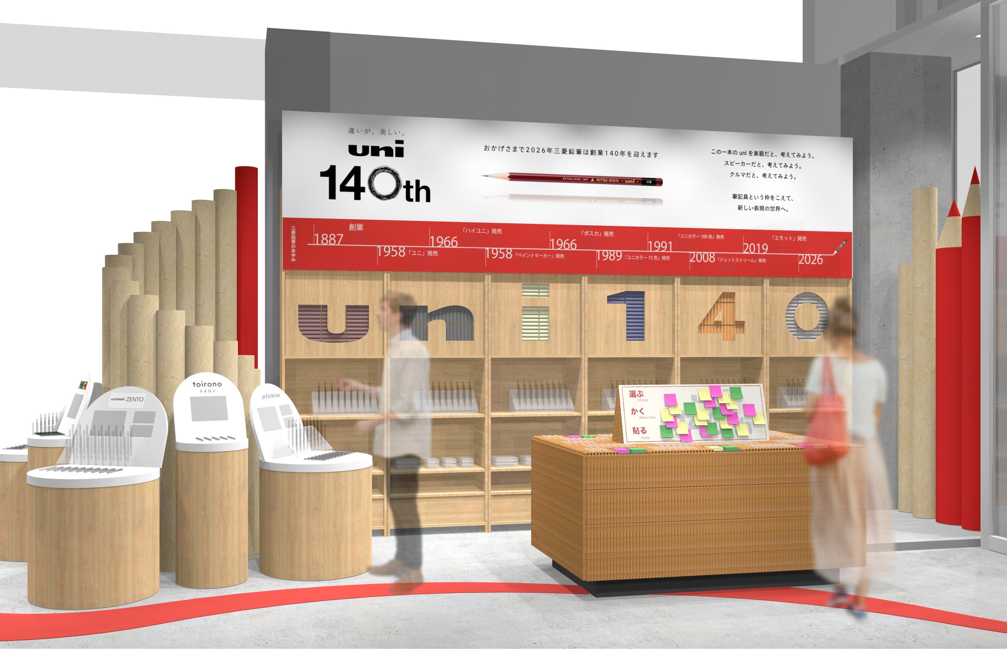 銀座ロフトは、2026年3月17日(火)~4月16日(木)の期間、筆記具メーカー「三菱鉛筆」の創業140年を記念したイベント「Life is unique.」を開催します。“人生のさまざまな場面で選ばれる筆記具でありたい”という想いを込め、書き味やデザインに加え、ギフトやノートとの組み合わせなど多様な視点から選べる約300種類の筆記具を展開します。さらに、3月発売の新製品「ユニボール ワン 3」やイベント限定カラーの「uniball ZENTO Spring Color」なども登場します。