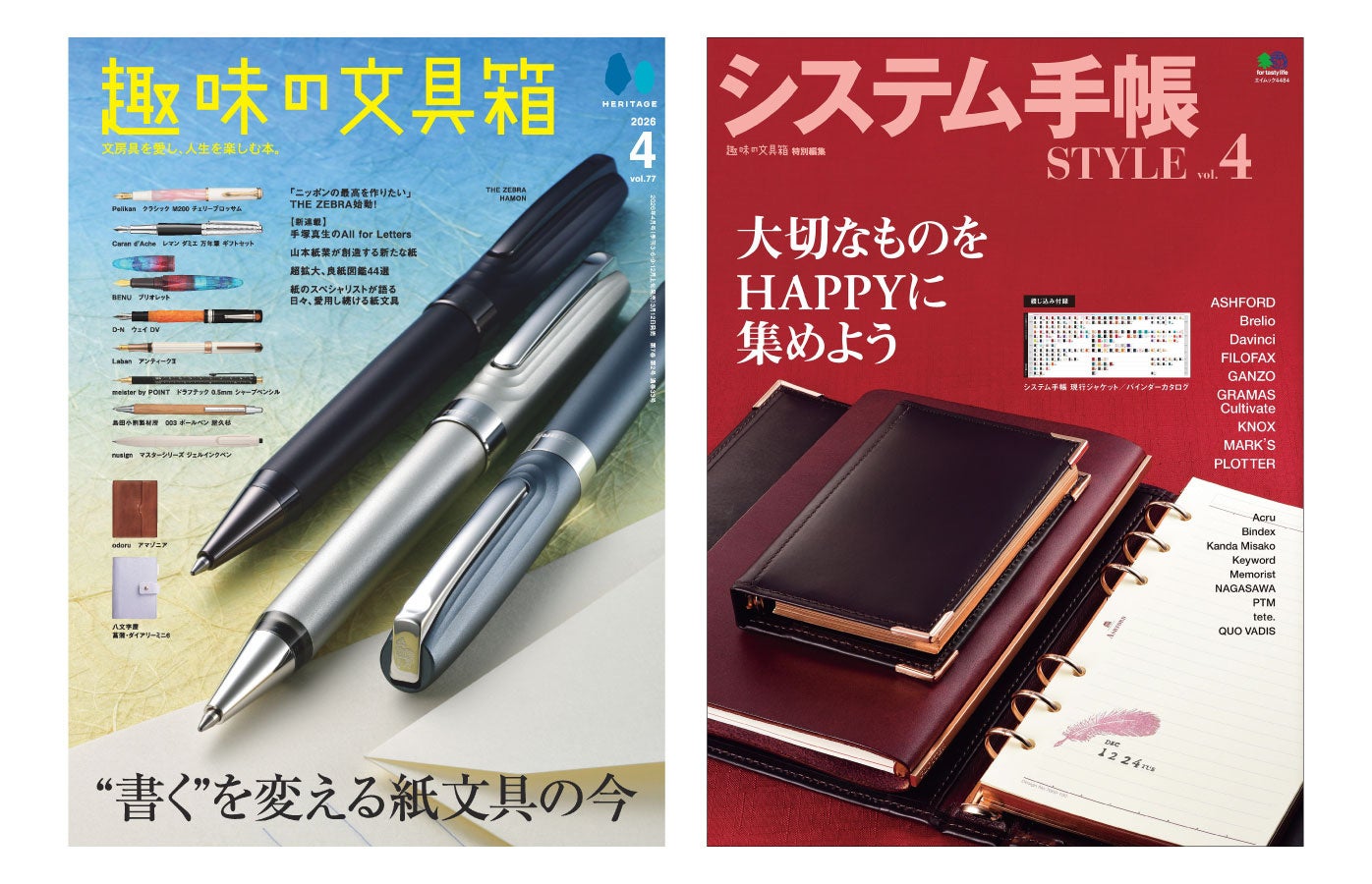 手で書くことの楽しさ、書く道具としての文房具の魅力を発信している季刊雑誌。よい文具や人気の筆記具は機能的でアナログな趣に溢れ、歴史に培われた魅力があります。筆記具の多彩な魅力を若者から大人まで広い世代の文具ファンに向け、万年筆や美しく機能的な文具を趣味と実用の視点から紹介しています。年に4回(3•6•9•12月)発刊しています。
